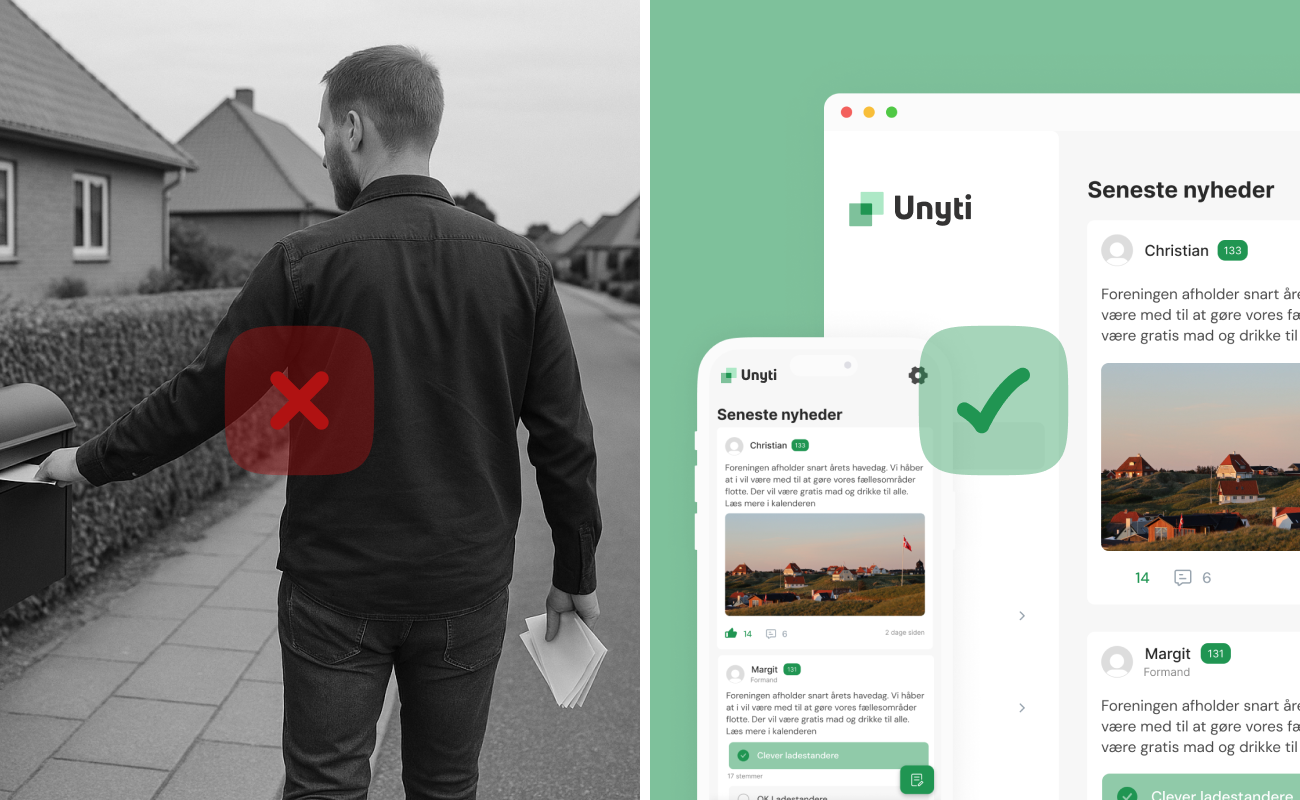 Hvem var det nu, der lå inde med referatet fra sidste års generalforsamling? Med Unyti Foreningsplatform er alt samlet ét sted. Her finder I referater, vedtægter, begivenheder og meget mere. Alt det, der hører til jeres boligforening, samlet og let tilgængeligt i Unyti.