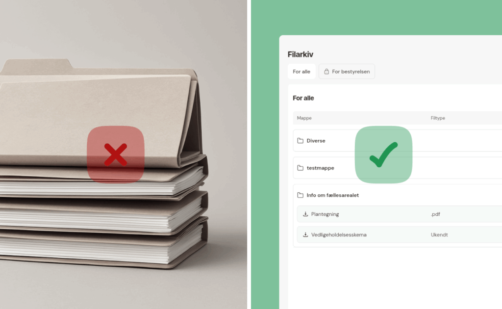 Slip for ringbind og støvede papirer. Unyti Foreningsplatform har et smart filarkiv hvor i kan samle alle boligforeningens dokumenter og filer i ét sted.