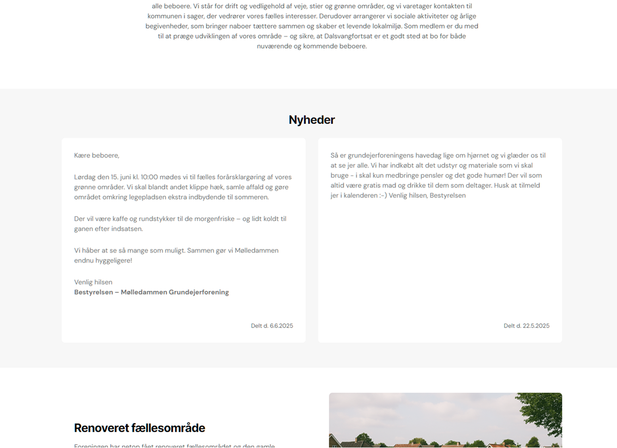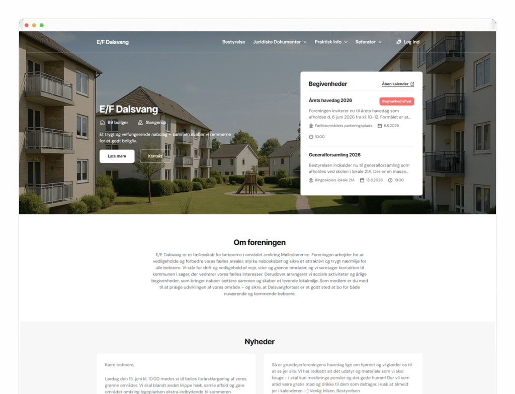 Begivenheder, nyheder, dokumenter og bestyrelse synkroniseres automatisk.